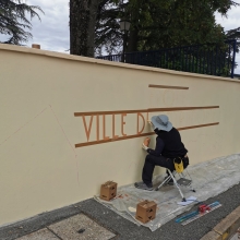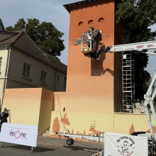 Les artistes de Ma Touche Perso sont en cours de réalisation de la fresque aux symboles forts. L'inauguration est ouverte au public.